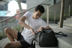 For cycling, running or any outdoor sport, you want something different : a compact backpack, ideally with a hydration bladder sleeve, reflective strips, and a chest strap to keep it stable. Weight distribution matters a lot when you’re moving fast.